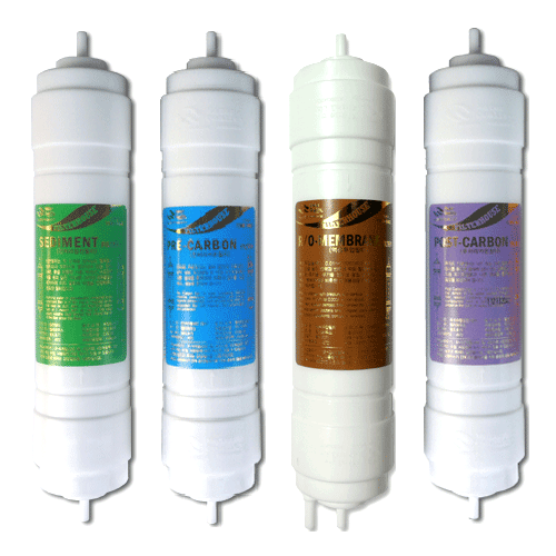 1, 멤브레인(R/O)포함 4개세트. 2, 필터내용-침전(세디멘트)필터 1개/ 전처리(프리)카본 1개/ 후처리(포스트)카본 1개, R/O멤브레인 1개, 지역별, 사용량에 따라 차이는 있으나 약 12~24개월을 사용할 수 있습니다.